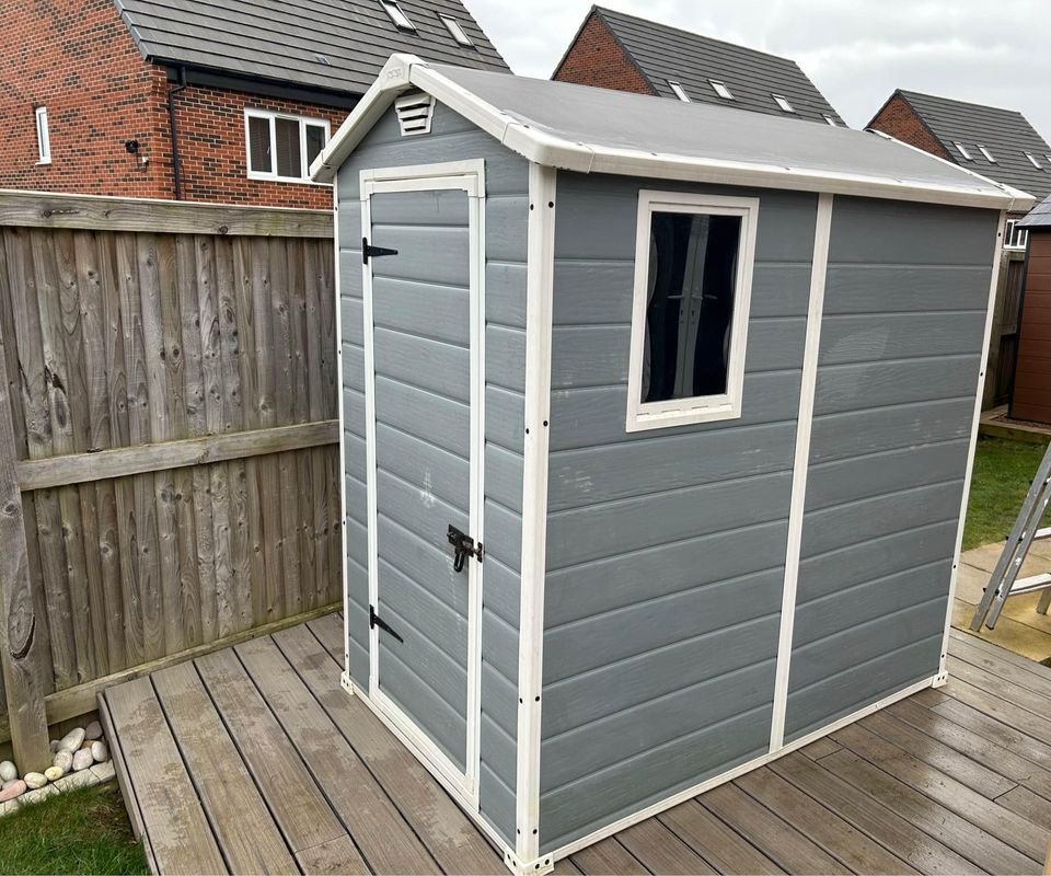 • Keter Manor Outdoor Plastic Garden Storage Shed, Grey, 6 x 4 ft