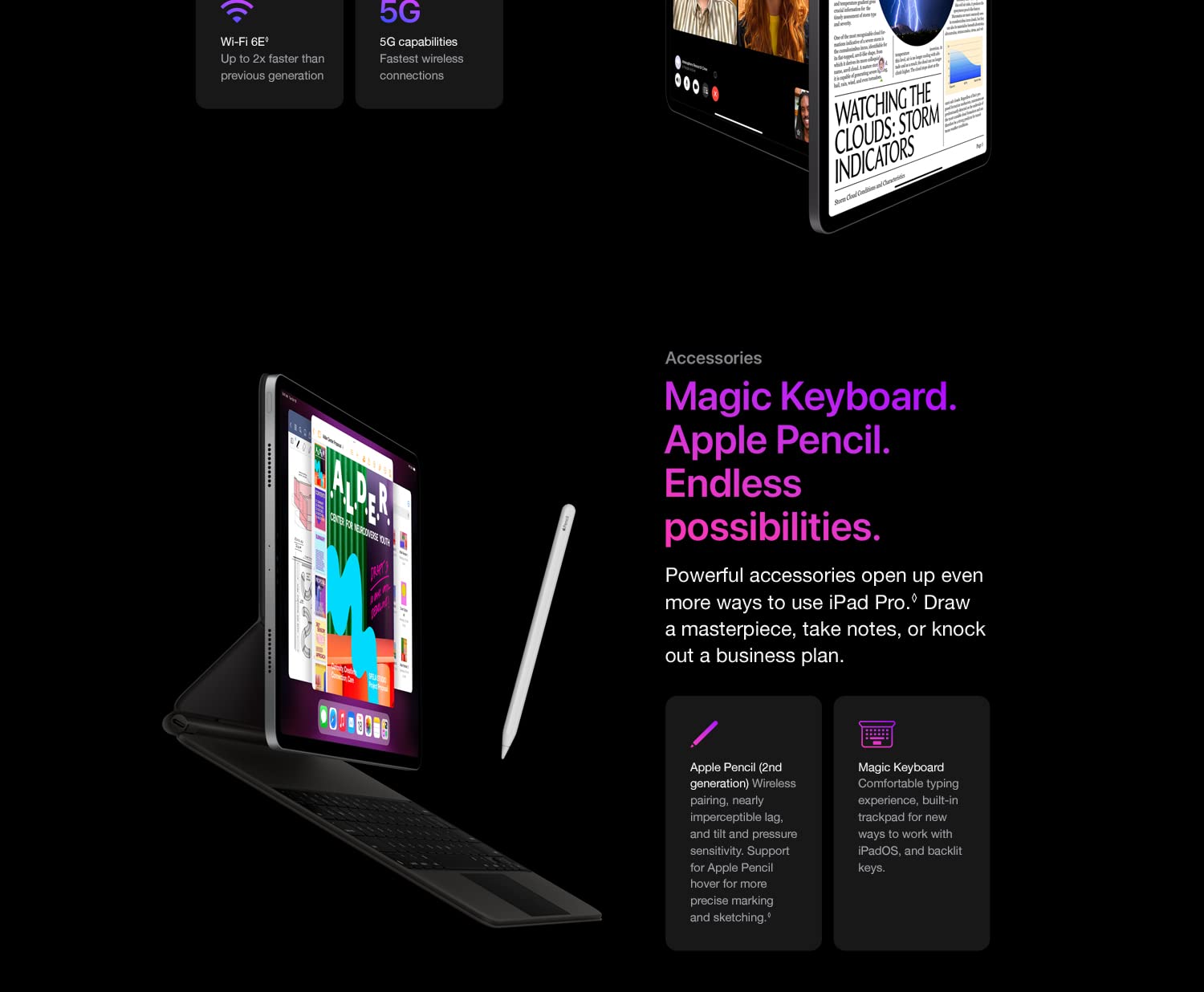 • Works with Apple Pencil (2nd generation), Magic Keyboard, and Smart Keyboard Folio