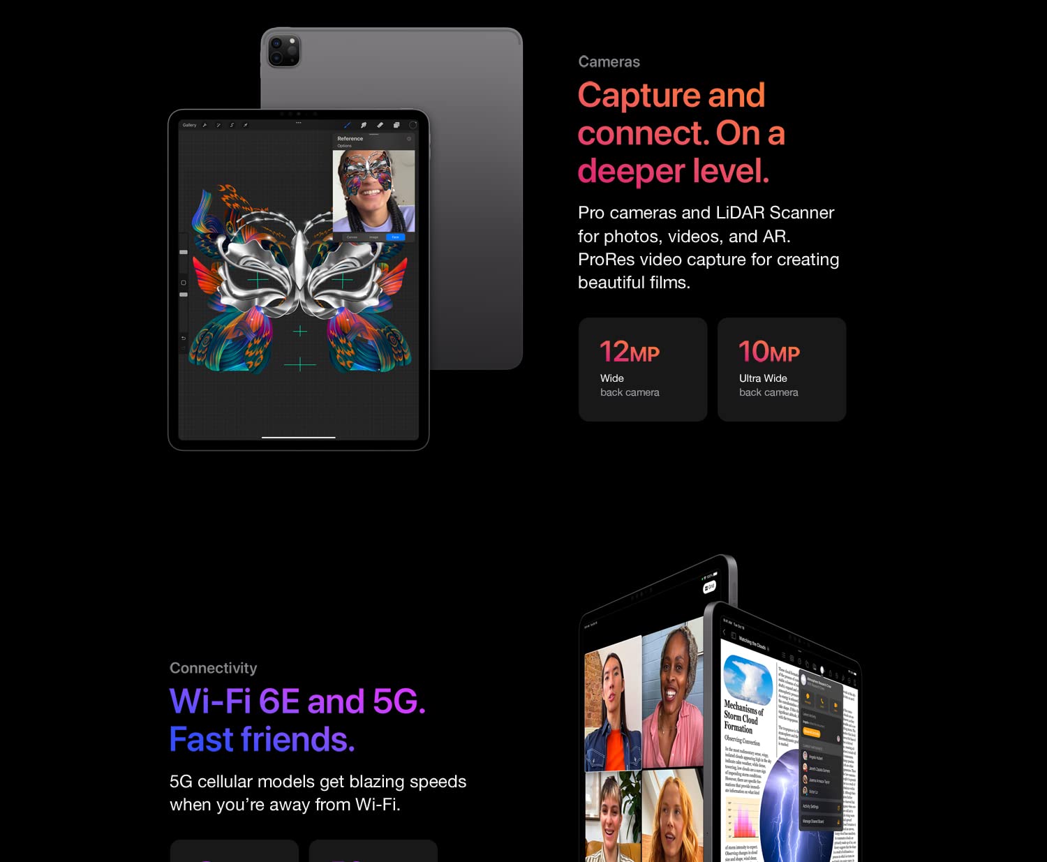 • Brilliant 12.9-inch Liquid Retina XDR display with ProMotion, True Tone, and P3 wide color